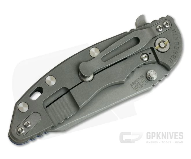 Tri-Way Pivot:Â The newest innovation from Rick Hinderer, the Tri-Way pivot features milled pockets in the blade and frame allowing for the use of ball bearing pivot washers (installed) or, utilizing steel spacers to fill those pockets, you can use either of the included sets of nylon or bronze washers to customize the action and operation of your knife.