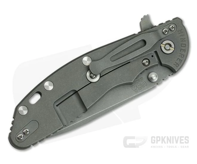 Tri-Way Pivot:Â The newest innovation from Rick Hinderer, the Tri-Way pivot features milled pockets in the blade and frame allowing for the use of ball bearing pivot washers (installed) or, utilizing steel spacers to fill those pockets, you can use either of the included sets of nylon or bronze washers to customize the action and operation of your knife.