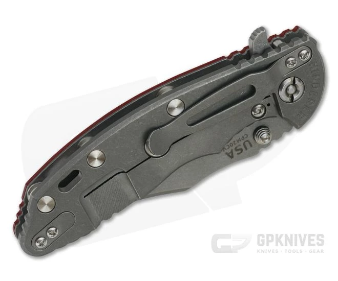 Handle: Full titanium frame lock and liner are matching Working Finish for a rugged, wear hiding look with subdued visual appeal. Satin Hardware and standoffs create one solid package while a 3D textured G10 scale coupled with strategically placed jimping provides a solid grip. A blade choil allows for a more forward grip for controlled work. Additional features include the Hinderer Lockbar Stabilizer, titanium clip insert and customizable modular design.