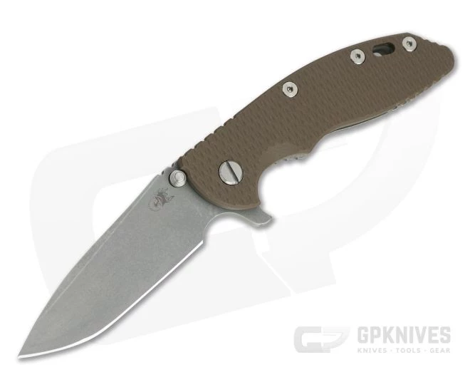 Handle: Full titanium frame lock and liner have a matching Working Finish that hides wear well while maintaining a rugged style. Satin Hardware and standoffs create one solid package while a 3D textured G10 scale coupled with strategically placed jimping provides a solid grip. A blade choil allows for a more forward grip for controlled work. Additional features include the Hinderer Lockbar Stabilizer, titanium clip insert and customizable modular design.
