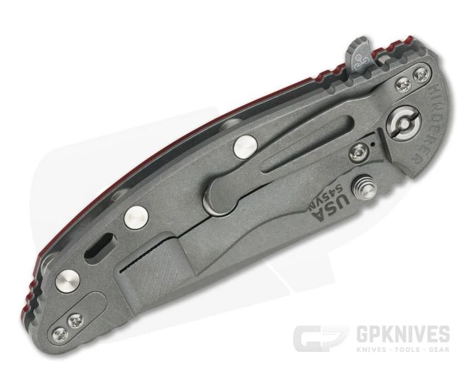 Handle:Â Full titanium frame lock and liner have a matching Working Finish that hides wear well while maintaining a rugged style. Satin Hardware and standoffs create one solid package while a 3D textured G10 scale coupled with strategically placed jimping provides a solid grip. A blade choil allows for a more forward grip for controlled work. Additional features include the Hinderer Lockbar Stabilizer, titanium clip insert and customizable modular design.