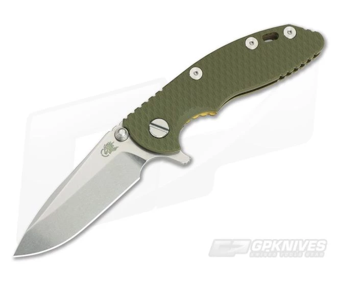 Handle:Â Full titanium frame lock and liner have a matching Stonewash Bronze finish that is visually appealing and hides wear over time. A 3D textured OD Green G-10 scale coupled with jimping all around creates a secure grip. The XM-18 includes the innovative Hinderer Lockbar Stabilizer and two-position titanium clip and insert for tip up or down, right hand carry.