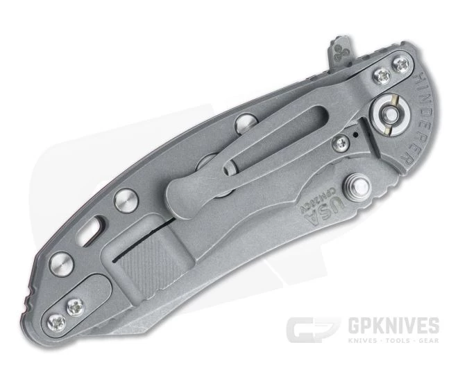 Tri-Way Pivot:Â The newest innovation from Rick Hinderer, the Tri-Way pivot features milled pockets in the blade and frame allowing for the use of ball bearing pivot washers (installed) or, utilizing steel spacers to fill those pockets, you can use either of the included sets of nylon or bronze washers to customize the action and operation of your knife.