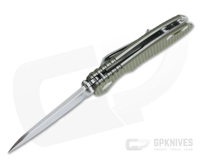 Handle: Dual titanium liners support two 3D textured, OD Green G10 scales with strategic jimping for minimal weight and maximum traction. One liner forms the locking mechanism which is robust yet light weight and easy and intuitive to operate.