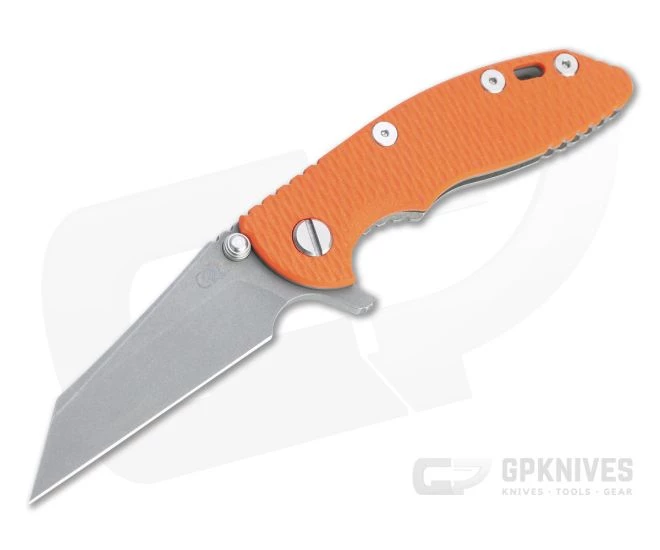 The Hinderer Knives XM-18 3″ is a precision-crafted hard-use tactical folder sized for discreet every day. Easy, one-hand operation and a reliable lock system are the foundation of the XM series. The XM-18 3″ features an integral flipper tab and dual thumb studs for fast, easy operation in a compact platform that is comfortable for most users. This version comes with a Working Finish CPM-20CV Wharncliffe blade, matching titanium frame and orange G10 scale.