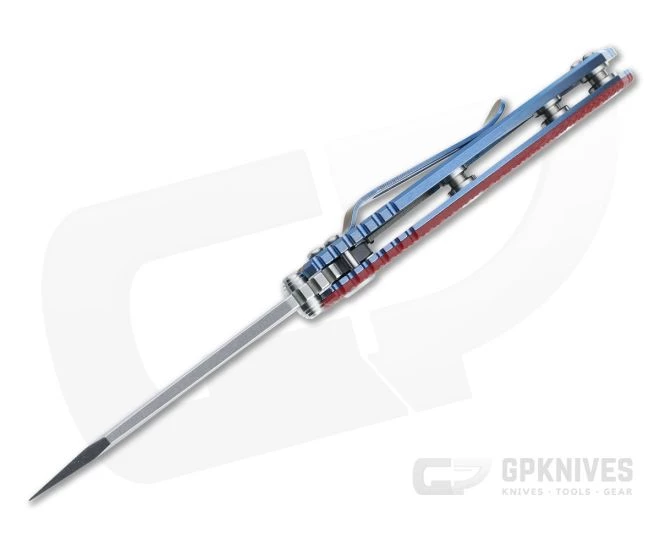 Handle:Â Titanium frame and liner come in a matching blue stonewashed finish that hides wear with style while the textured G10 scale and jimping provide a secure grip. Equipped with a steel lock face insert, the integral frame lock has solid lockup and smooth operation for safe use. The Hinderer LockBar Stabilizer, titanium clip insert and hardware make this a fully customizable modular design.