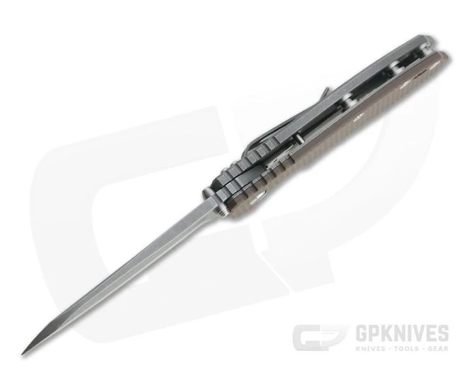 Handle: Â Full titanium frame lock and liner have a matching Working Finish that hides wear while maintaining a rugged and discreet look. Satin Hardware and standoffs create one solid package while 3D texturing on the G10 scale coupled with jimping all around create a solid grip. A hardened steel lock face insert doubles as an over travel stop and pairs with the Hinderer Lockbar Stabilizer to deliver a smooth operating, rock solid reliable lock up.