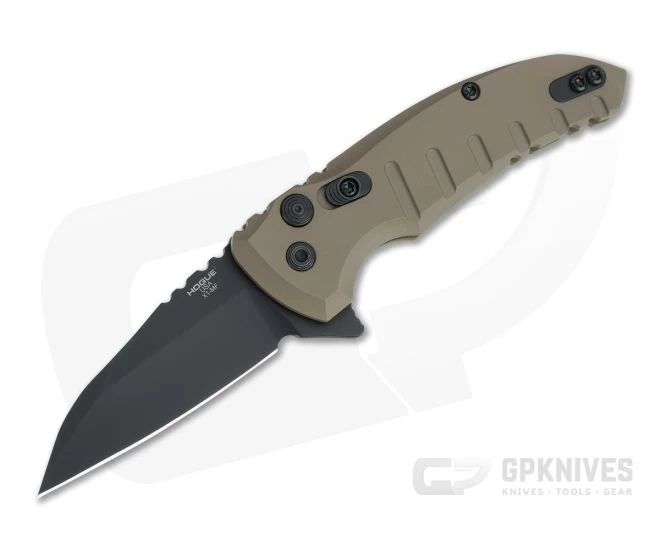 The Hogue X1 MicroFlip is the manual counterpart to the A01 MicroSwitch. It offers the same solid performance and compact platform with manual flipper deployment. Premium materials paired with precision American manufacturing make the MicroFlip an excellent daily carry choice. This version comes with a black Cerakote coated CPM-154 Wharncliffe blade and matte FDE (Flat Dark Earth) aluminum handles.