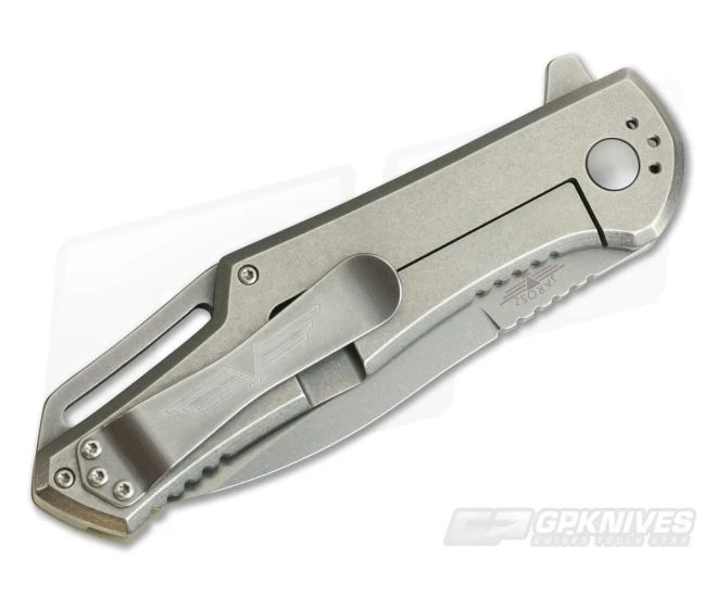 Handle: The slim handle of the 7509 is made from liner-less Tan G10 on the front for texture and weight reduction while the frame lock side is solid titanium for some of the best strength-to-weight ratio available. A steel lock face insert offers smooth and reliable operation. A tumbled, stainless steel backspacer gives the knife great balance in hand and has a large oval cutout for lanyard attachment.