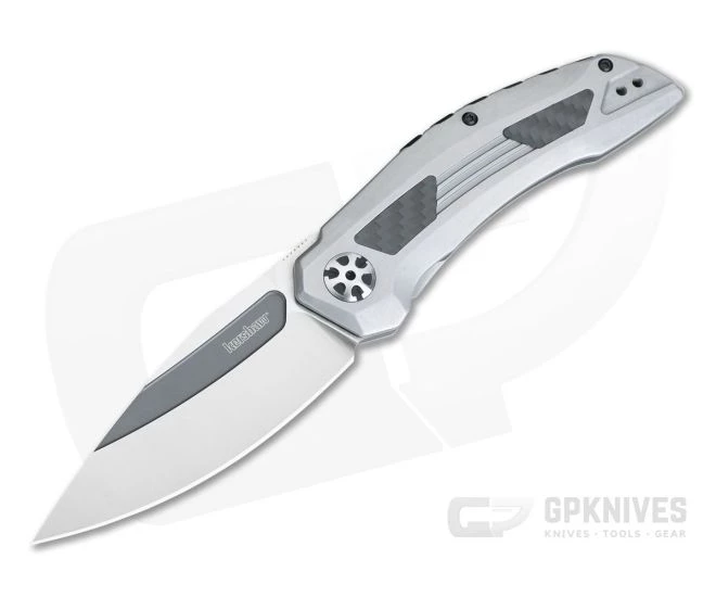 Aerospace-design inspired lines give the Norad a distinctive look to stand out from the herd. Opening with Kershaw’s KVT ball-bearing system and a minimalist flipper which disappears altogether when the knife is open, the beefy drop-point blade is ready in a flash. Carbon fiber inserts, an oversized, polished pivot and custom back spacer pair with the two-tone satin and gray PVD blade to round out this striking design from Kershaw knives.