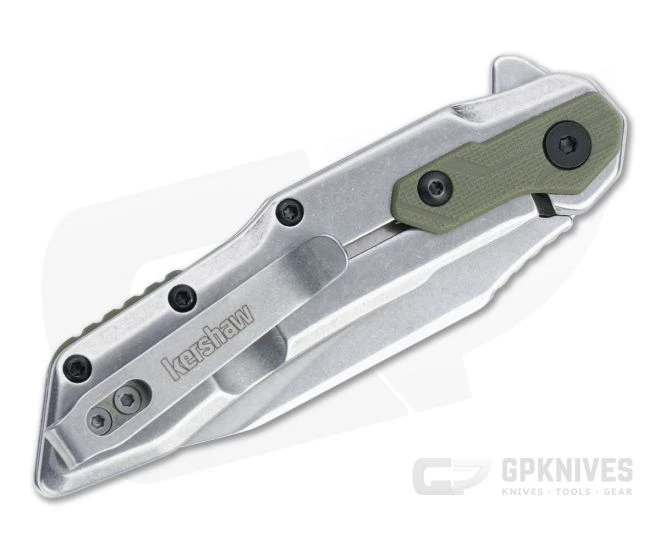 Offering a premium option in the Kershaw Starter Series the Salvage SpeedSafe assisted flipper makes a solid daily carry flipper with its all-purpose reverse Tanto blade, stainless steel frame lock construction and high traction olive GFN overlays. Sweeping lines and subtle details like a matching green back spacer and over travel stop give the Salvage plenty of style while a solid build and quality materials deliver a practical cutting tool that accomplishes the task at hand.