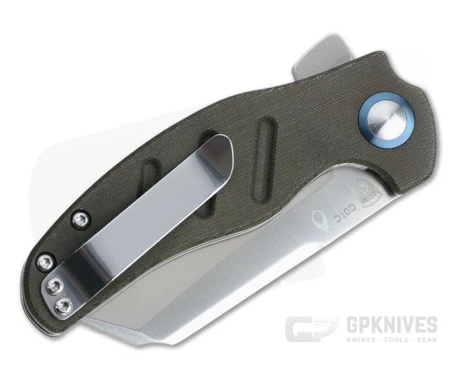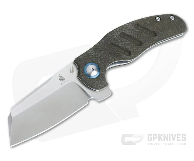 The c01c from Kizer is a cleaver profile flipper designed by Sheepdog Knives. This Mini version produced as part of the Vanguard line delivers the eye-catching style of this design in compact and utilitarian platform. This liner lock version comes with a sub-3 inch, satin finished 154CM blade and OD Green linen Micarta scales.