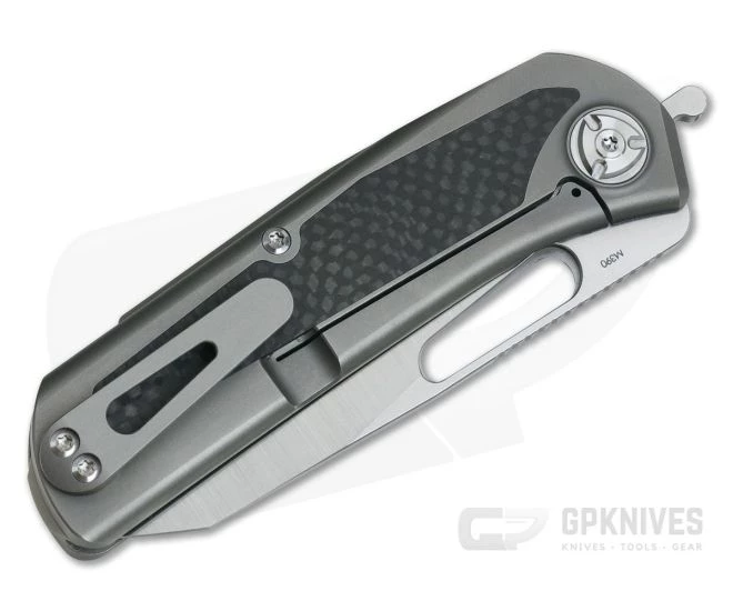 The Liong Mah designed KUF (Kitchen Utility Folder) is back and even better in the KUF v2! Slimmed down from the original the KUF v2 is contoured and comfortable in the hand. While you can use the blade hole for deployment the v2 is equipped with an innovative new top flipper tab that allows for even more deployment options, all fast and smooth thanks to the ceramic bearing pivot. This version of the KUF v2 is made from 3D contoured titanium with carbon fiber inlays, integral framelock and satin finished M390 blade.