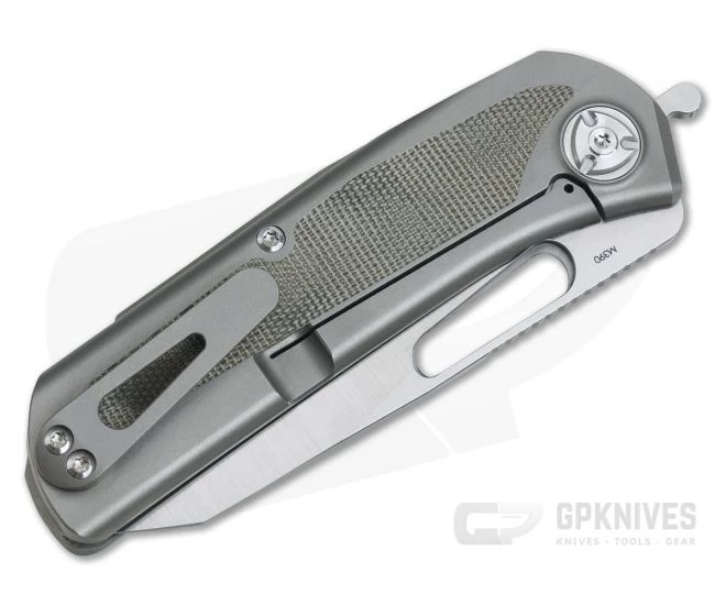 The Liong Mah designed KUF (Kitchen Utility Folder) is back and even better in the KUF v2! Slimmed down from the original the KUF v2 is contoured and comfortable in the hand. While you can use the blade hole for deployment the v2 is equipped with an innovative new top flipper tab that allows for even more deployment options, all fast and smooth thanks to the ceramic bearing pivot. This version of the KUF v2 is made from 3D contoured titanium with Green Canvas Micarta inlays, integral framelock and satin finished M390 blade.