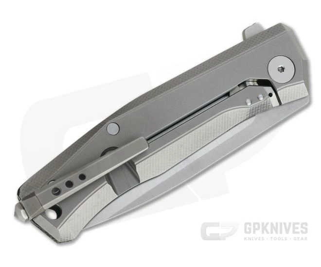Handle:Â The semi-open back handle construction consists of a contoured and textured canvas Micarta top and titanium frame with a matching back spacer. Simple and elegant, the handles offer traction and comfort for secure, extended use. A durable composite material, canvas Micarta is rugged and provides traction even when wet. The integral frame lock is reinforced with a hardened steel insert preventing wear from the blade offering smooth operation and secure lockup over the life of the knife. The insert has an extended tab that also prevents lock over travel. A large hole at the pommel end allows for lanyard attachment.