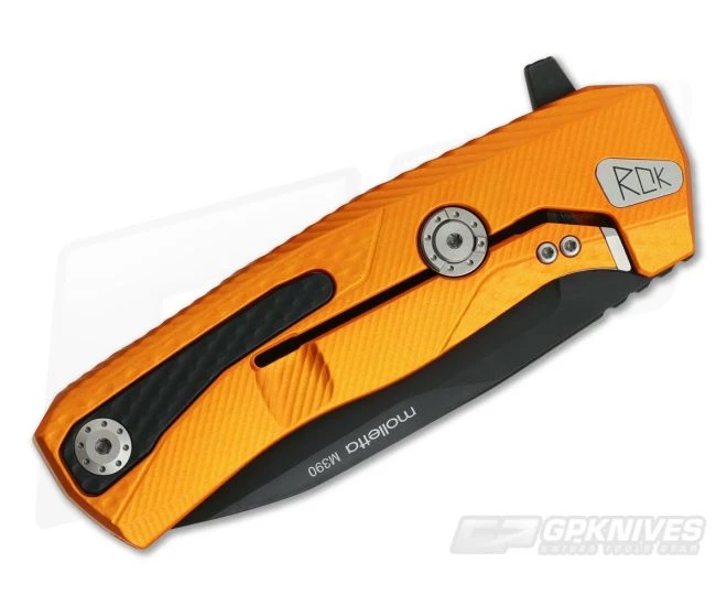 Handle:Â The integral construction is built from a single piece of Orange Anodized billet Aluminum milled using precision 4-axis machining. A combination of grooved and diamond texturing and milled contours delivers an excellent balance of comfort and traction in the hand. The ROK built with a steel insert equipped, integral frame lock mechanism with the added security of the Rotoblock system. The Rotoblock acts as a lock bar stabilizer and when engaged will completely block or lock the lock bar in the engaged position delivering “fixed blade like” reliability. The innovative, spring loaded H.WAYL clip automatically retracts into the handle when not in use for added comfort but is ready for secure carry with a slide of the button.