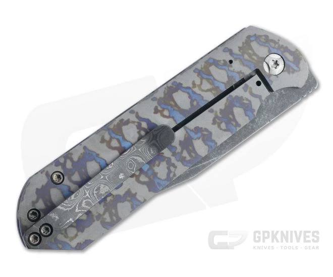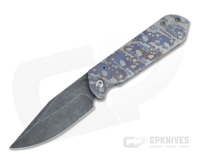 The Maverick Custom Knives Frame Lock Front Flipper is a simple, straightforward cutting tool built for hard use. The design, construction and finish are practical and utilitarian while still affording some unique aesthetic appeal to your collection. This piece comes with an acid washed CPM-10V clip point blade and flame anodized titanium handles.
