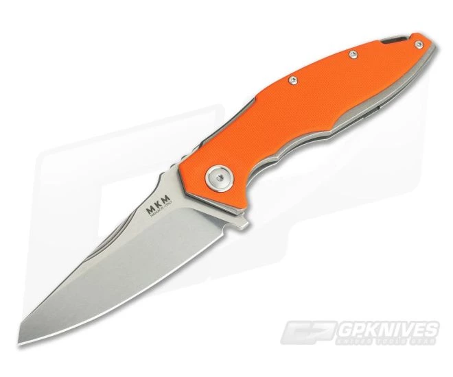 Handle: Stonewashed titanium handle slabs are chamfered for comfort and support utilitarian Orange G10 overlays. A full titanium backspacer gives the Raut great balance in the hand and provides a generous oval hole for lanyard attachment. The integral frame lock mechanism provides smooth, reliable operation for safe use. The construction is rounded out with Grey Torx hardware along with a right hand, tip-up, titanium pocket clip and dual pivot collars.