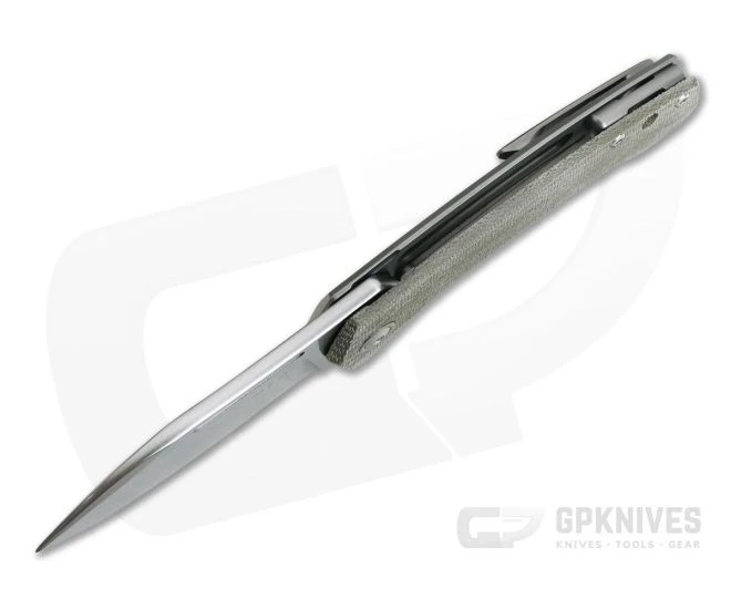 Handle: This version comes with a 3D textured and contoured Green Canvas Micarta front scale and matching titanium integral frame lock construction with hardened steel lock face insert. The dual texture handle milling provides comfort and traction with a semi-open back construction for ease of maintenance. The generous handle design accommodates multiple grip positions and hand sizes. Titanium hardware and bronze anodized pivot collar round out the construction with a generous hole provided for lanyard attachment. Includes nylon zip pouch for transport and storage.