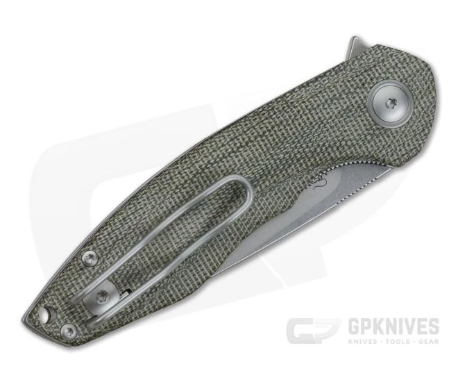 MKM and the Mikita network, deliver another wonderful collaborative design with Jesper Voxnaes with the Timavo flipper. The aesthetics are inspired by the waves and forms of a flowing river while the overall design is all about function. This version comes with contoured green canvas Micarta handles and a stonewashed finished M390 blade.
