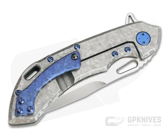 Carries via a right hand, tip-up Frosty Blue titanium pocket clip with ceramic tension ball.