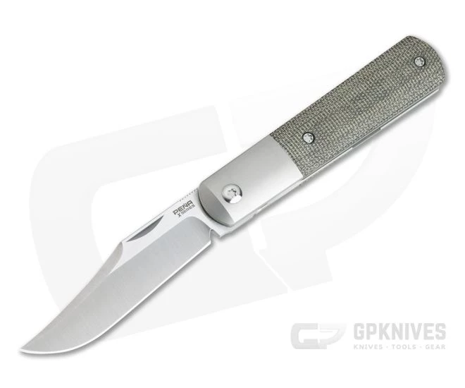 Custom knife maker Enrique Pena is known for his exceptionally well crafted and refined designs as well as the blending of traditional and modern elements. This Pena Knives Front Flipper Barlow is a perfect example and offers his custom design in a more affordable, production platform. This version comes with a satin finished, M390 blade, titanium bolsters and liners and Green Canvas Micarta handle scales.