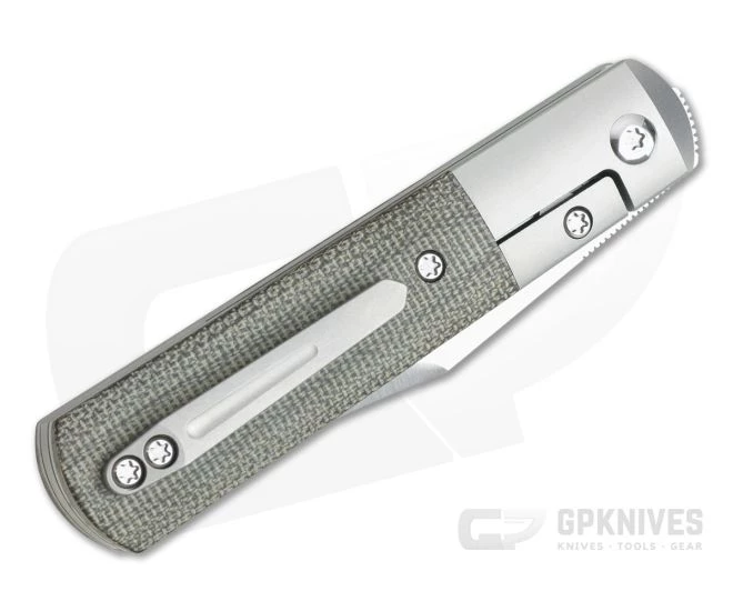 Handle: Modern in construction, the straight Barlow handle offers a classic style and functional ergonomics. Two thick titanium liners form the handle and the long integral bolsters, signature to the Barlow. Rugged Canvas Micarta scales are contoured for a comfortable, ergonomic grip that provides solid traction. The rear liner is cut into a reliable liner lock mechanism which is accessed via a cutout in the bolster and outfitted with a hardened steel lock face for smooth, reliable operation. Construction is rounded out with a titanium partial back spacer and satin Torx hardware.