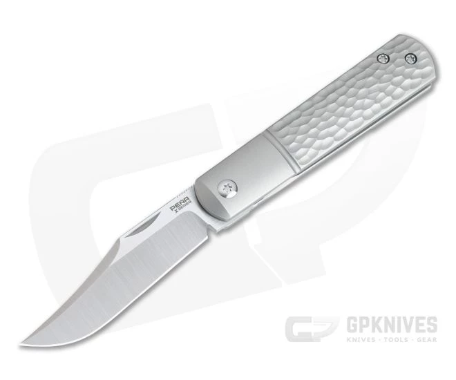 Custom knife maker Enrique Pena is known for his exceptionally well crafted and refined designs as well as the blending of traditional and modern elements. This Pena Knives Front Flipper Barlow is a perfect example and offers his custom design in a more affordable, production platform. This version comes with a satin finished, M390 blade, titanium faux bolsters and jigged ‘scales’.