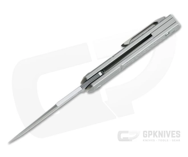 Handle:Â Modern in construction, the straight Barlow handle offers a classic style and functional ergonomics. Two thick titanium slabs form the handle with integral long faux bolsters, signature to the Barlow. The scale section of the handles are jigged for a timeless feel and added traction with a subtle contoure for a comfortable, ergonomic grip. The rear slab is cut into a reliable frame lock mechanism and outfitted with a hardened steel lock face for smooth, reliable operation. Construction is rounded out with a titanium partial back spacer and satin Torx hardware.