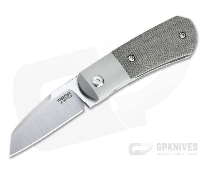 Custom knife maker Enrique Pena is known for his exceptionally well crafted and refined designs as well as the blending of traditional and modern elements. The Pena Knives X Series delivers custom quality and design in a more affordable, production platform. The Front Flipper Micro Apache takes the original and scales it down for the ultimate in easy carry. This version comes with a satin finished, M390 blade and green canvas Micarta handle scales. Limited production run.