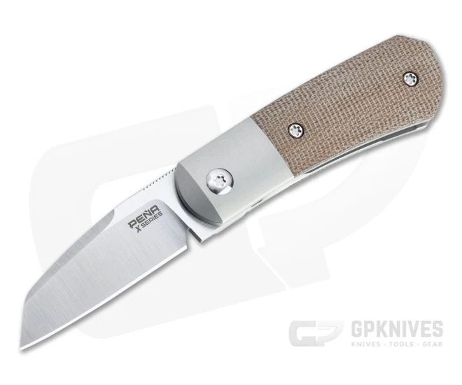 Custom knife maker Enrique Pena is known for his exceptionally well crafted and refined designs as well as the blending of traditional and modern elements. The Pena Knives X Series delivers custom quality and design in a more affordable, production platform. The Front Flipper Micro Apache takes the original and scales it down for the ultimate in easy carry. This version comes with a satin finished, M390 blade and natural brown canvas Micarta handle scales. Limited production run.