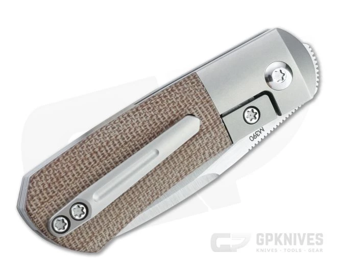 Handle:Â Thick titanium liners with integral bolsters pair with canvas Micarta covers to form the compact trapper-inspired handle. Contoured for a comfortable, ergonomic grip the handles house the blade and liner lock mechanism with a hardened steel lock face for smooth, reliable operation. A titanium partial back spacer and Torx hardware complete the construction.
