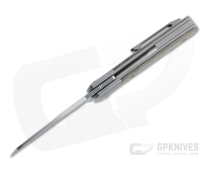 Handle:Â Inspired by the classic single blade trapper, the sweeping handle consists of two thick titanium liners with integral milled bolsters supporting rugged canvas Micarta covers. Contoured bolsters and covers provide a comfortable, ergonomic grip. One liner forms the lock mechanism, precision machined for smooth, reliable operation for the life of the knife.
