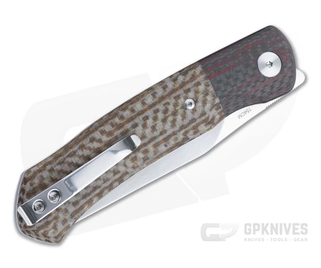 Blending gentleman’s flair and tactical design the QSP Gannet is a modern top flipper that is classy enough for dress carry. The classic clip point blade offers functional utility with ultrafast top flipper bearing deployment. Time tested liner lock construction and subtly contoured scales create a comfortable grip for extended use while the carbon fiber bolster gives it a timeless style. This version comes with a hand rubbed satin 154CM stainless steel blade, red and black carbon fiber bolsters and brown Micarta scales.