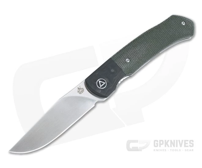 Blending gentleman’s flair and tactical design the QSP Gannet is a modern top flipper that is classy enough for dress carry. The classic clip point blade offers functional utility with ultrafast top flipper bearing deployment. Time tested liner lock construction and subtly contoured scales create a comfortable grip for extended use while the carbon fiber bolster gives it a timeless style. This version comes with a hand rubbed satin 154CM stainless steel blade, carbon fiber bolsters and green canvas Micarta scales.