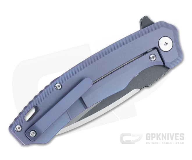 Handle:Â Internally milled for weight reduction the dual titanium slabs have heavily contoured chamfers for a full and comfortable grip and plenty of style. A partial back spacer delivers ideal balance and added traction with jimping echoed on the blade thumb ramp and flipper tab. Violet anodized titanium gives the handle plenty of visual appeal.