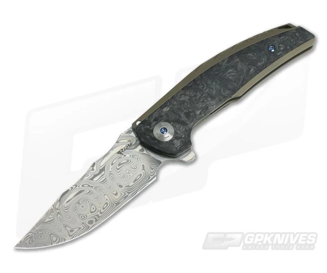 The Reate Knives JACK is a large, tactical, integral frame lock flipper showcasing the fit, finish and design quality capabilities of Reate Knives. The blade is made from gorgeous, eye-catching Damasteel stainless Damascus. The bronze anodized integral titanium frame supports dual marbled carbon fiber inlays that take the JACK to the next level is style and comfort. Whether you are elevating your every day carry or adding to your collection the Reate JACK is an excellent choice.
