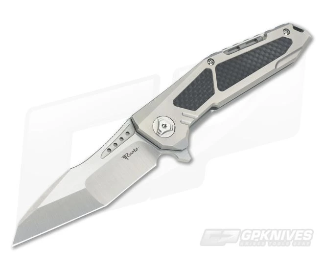 The K-3 Flipper from Reate Knives pushes the boundaries of traditional knife form without sacrificing any function or performance. The clean, geometric lines of the handle are inlaid with beautiful Carbon Fiber and are subtly milled and contoured for excellent ergonomic comfort. A radical, compound ground Tanto blade is made from high performance CTS-204P blade steel. The standard for Reate fit and finish is exceptional.