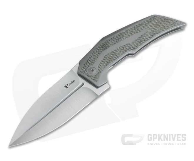 Reate Knives and Tashi Bharucha join forces again in this elegant, collaborative design, the T4000. Bharucha’s signature modern and ergonomic design is in full effect on this massive spear point flipper. The contoured, faux integral handle design makes for a comfortable user and striking visual appeal. This version has a two-tone satin finished, M390 blade and rugged Green Canvas Micarta handle inlay. Style and function find a home in the Reate T4000.