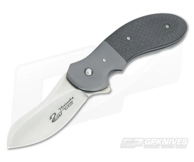 We have a Scot Matsuoka custom Kobe Flipper dressed in stunning Lightning Strike Carbon Fiber. The hollow ground blade composed of CPM-154 stainless steel has a satin finish and flips with no wrist-action needed thanks to IKBS on board. The handle features a single LS carbon fiber scale accenting the full frame bead-blasted titanium with frame-lock and Hinderer lock bar stabilizer. Titanium pocket clip attached for tip-down carry. Includes a nylon zipper pouch that reads “Scot Matsuoka” in gold lettering. This custom Kobe is brand new directly from maker Scot Matsuoka.
