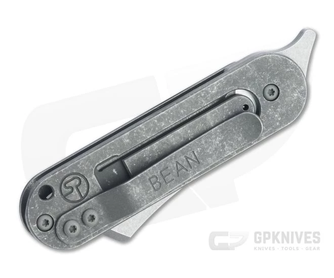 Serge Panchenko’s Serge Knife Co. a semi-custom Mid-Tech Bean top flipper with acid washed Nitro-V blades from Millit Knives and custom titanium handles from the man himself. The Bean is a compact detent slip joint offering snappy top flipper deployment in a non-locking platform. The pill shaped design of the handle offers a clean look and secure three-finger grip. This version comes with a Cleaver blade, acid washed titanium frame and flame anodized titanium inlaid front slab.