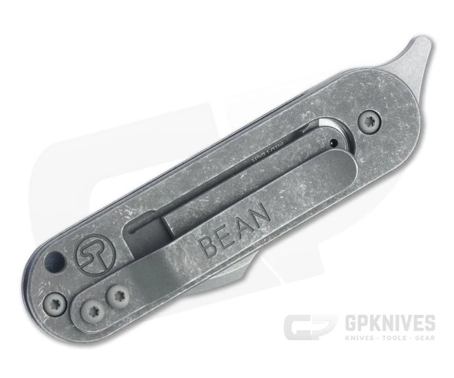 Serge Panchenko’s Serge Knife Co. a semi-custom Mid-Tech Bean top flipper with acid washed Nitro-V blades from Millit Knives and custom titanium handles from the man himself. The Bean is a compact detent slip joint offering snappy top flipper deployment in a non-locking platform. The pill shaped design of the handle offers a clean look and secure three-finger grip. This version comes with a Harpoon blade, acid washed titanium frame and blue anodized skull and crossbones engraved front slab.