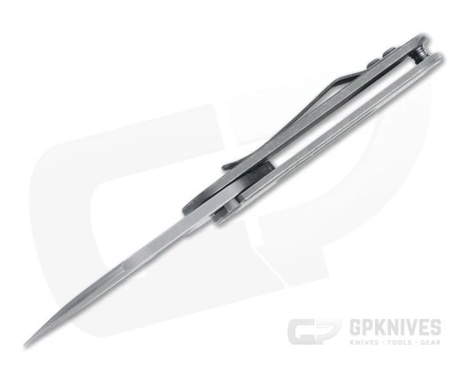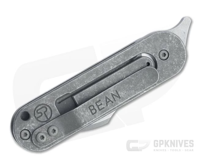 Handle:Â Dual slabs of chamfered titanium are joined via the single barrel spacer and pivot forming the simple, solid handle. Rear frame and clip are acid washed and tumbled for discreet carry, with a sprung detent ball for secure tension in open and closed positions for the slip joint operation. The front scale has a matching finish and milled hole for weight reduction and traction.