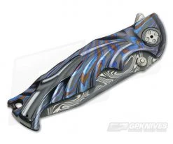 Brian Tighe Custom Tighe Down Damasteel Integral Titanium Blue FatCarbon Inlaid Flipper