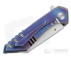 Serge Panchenko Custom Bean Drop Point Acid Washed Nitro-V Iridescent Blue Titanium Slip Joint 4709
