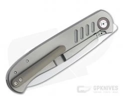 Burger Custom Atlas SFL Drop Point Satin Elmax Grooved Gray Titanium Frame Lock Front Flipper 4496