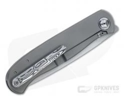 Burger Custom Atlas SFL Drop Point Satin M390 Black TiMascus Gray Frame Lock Front Flipper 4561