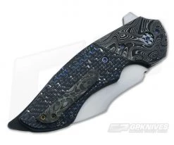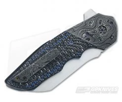 Grindhouse Knives TMAx #10 Nichols Iguana Damascus Marbled Carbon Fiber Blue Titanium Flipper