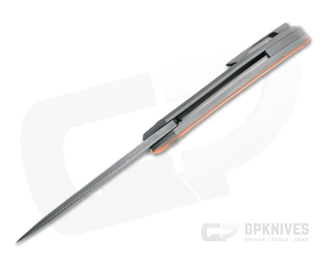 Custom maker Jamie Simeon of Simeon Custom Knives makes heirloom quality cutting tools that are built for serious use and delivered with uncommon style. The IcePick Rhino is a sleek, tactical, daily carry frame lock flipper with a stylish and rugged build. This piece comes with a smoke finished CPM 154, compound ground Tanto blade with milled texture and gray titanium handles with matching hardware and an orange G10 inlay.