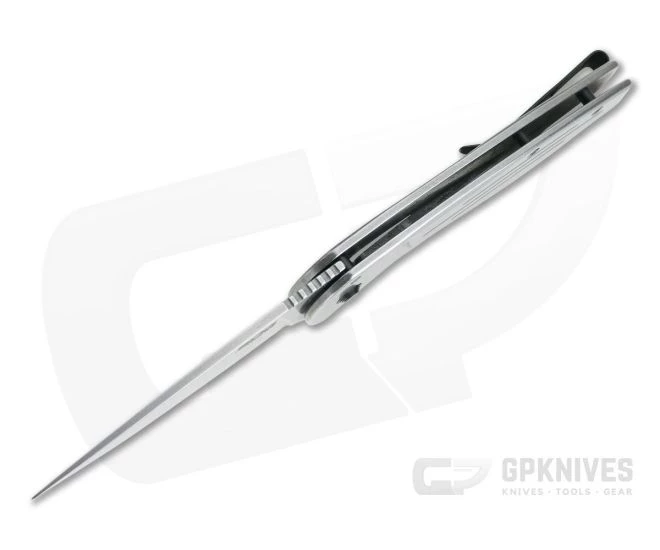 Handle:Â Two slabs of stonewashed stainless steel are joined with barrel spacers in an open back construction that is easy to clean and maintain. Milled grooves on the sides and a scalloped index finger groove add solid traction while the flipper tab creates a large forward guard for safety during use. Smooth stainless handles makes drawing the knife a fast, low-drag experience. The integral frame lock is simple, robust and flawless in operation for rock solid lock up.